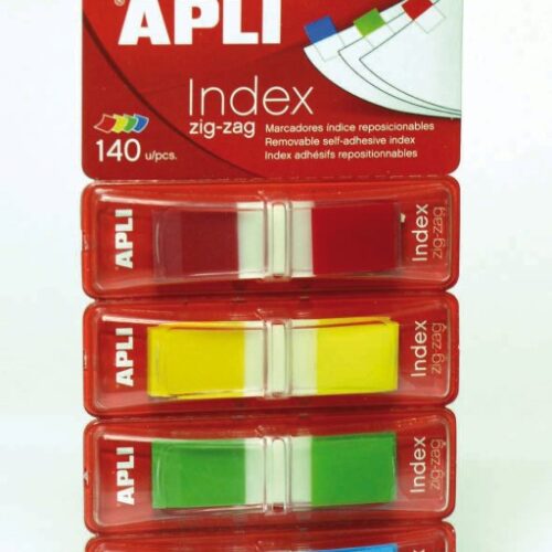 Αυτοκόλλητοι διάφανοι σελιδοδείκτες κόκκινου χρώματος. Η, σε σχήμα zig-zag αποθήκευσή τους, δεν πιάνει χώρο, είναι εύχρηστη κάνοντας τους άμεσα προσβάσιμους. Διάσταση 25×45, αριθμός αυτοκόλλητων, 50.