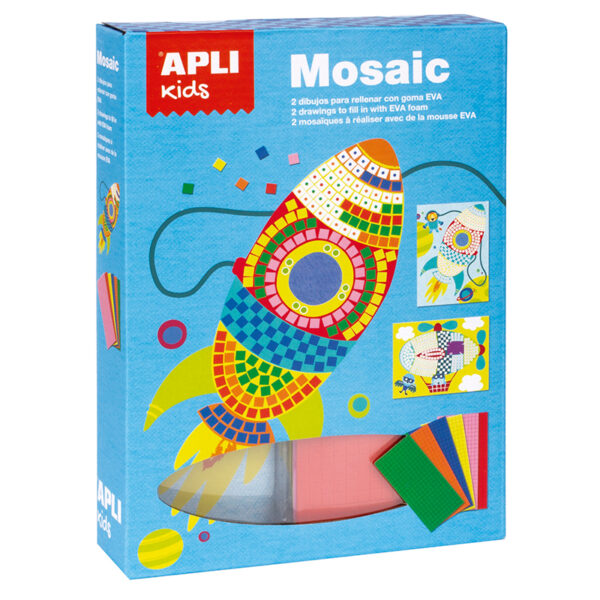 Παιχνίδι δημιουργίας αφρώδη μωσαικού με διαφορετικά χρώματα και τελειώματα για ένα στυλιστικό αποτέλεσμα. Περιέχει 2 χρωματιστές κάρτες με γεωμετρικό και διαφορετικό σχέδιο. Ιδανικό για την ανάπτυξη της επιδεξιότητας και ακρίβειας. Αναπτύσσει την συνεργασία χεριού-ματιού και της χωρικής όρασης.