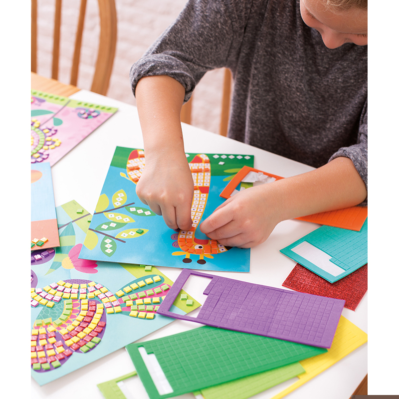 Παιχνίδι δημιουργίας με διαφορετικά χρώματα και τελειώματα για ένα στυλιστικό αποτέλεσμα. Περιέχει 2 χρωματιστές κάρτες με γεωμετρικό και διαφορετικό σχέδιο. Ιδανικό για την ανάπτυξη της επιδεξιότητας και ακρίβειας. Αναπτύσσει την συνεργασία χεριού-ματιού και της χωρικής όρασης.