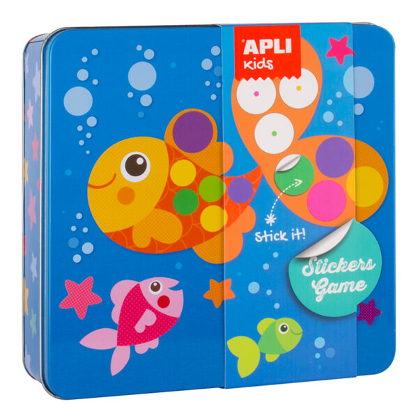 Ψυχαγωγικό και εκπαιδευτικό παιχνίδι με αυτοκόλλητα ψαράκια σε μεταλλικό κουτί, ιδανικό ν αποθηκεύσει τα παιδικά, αθώα, δημιουργικά μυστικά. Συμπληρώνει τα σχέδια στις κάρτες με τα ξεχωριστά γεωμετρικά αυτοκόλλητα και μπορεί να τα διορθώσει σε περίπτωση λάθους. Ενθαρρύνει την ικανότητα μηχανικού χειρισμού, συντονισμού χεριού-ματιού και τη χωρική όραση.