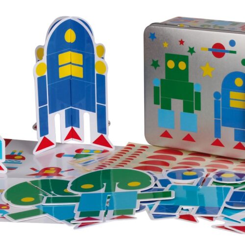 Ψυχαγωγικό και εκπαιδευτικό παιχνίδι με αυτοκόλλητα φεγγαράκια σε μεταλλικό κουτί, ιδανικό ν αποθηκεύσει τα παιδικά, αθώα, δημιουργικά μυστικά. Συμπληρώνει τα σχέδια στις κάρτες με τα ξεχωριστά γεωμετρικά αυτοκόλλητα. Δυνατότητα δημιουργίας διαφόρων εικόνων, τοποθετώντας τ αυτοκόλλητα βασει προτύπου που ήδη περιλαμβάνεται και προτείνει σχέδια διακόσμησης. Ενθαρρύνει την ικανότητα μηχανικού χειρισμού, συντονισμού χεριού-ματιού και τη χωρική όραση.
