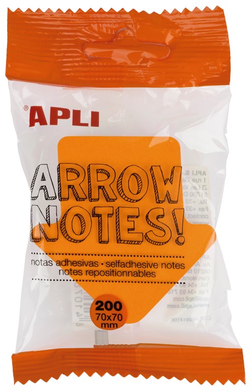 Αυτοκόλλητα σημειώσεων σε σχήμα “Βέλος”, διαστάσεων 70×70. Αριθμός αυτοκόλλητων φύλλων, 200.