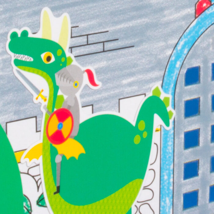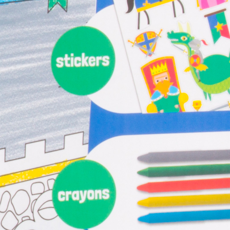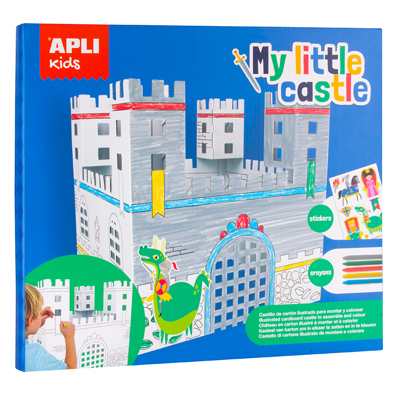 Εικονογραφημένο χάρτινο κάστρο για συναρμολόγηση και ζωγραφική. Σκοπός του παιχνιδιού είναι να ζωγραφίσεις το κάστρο, να τοποθετήσεις τα αυτοκόλλητα των διαφορετικών χαρακτήρων και στοιχείων και μετά να το συναρμολογήσεις για να παίξεις. Προάγει την ενασχόληση με τις δημιουργικές τέχνες, όπως ζωγραφική και διακόσμηση. Αναπτύσει την συγκέντρωση και αυτοπεποίθηση. Βοηθά το παιδί να χαλαρώσει και να διασκεδάσει.