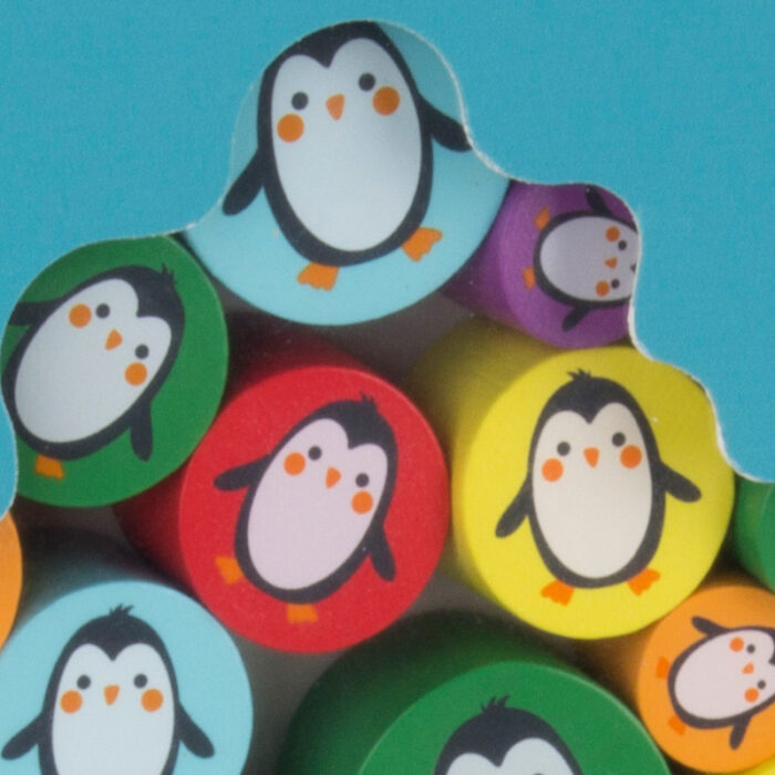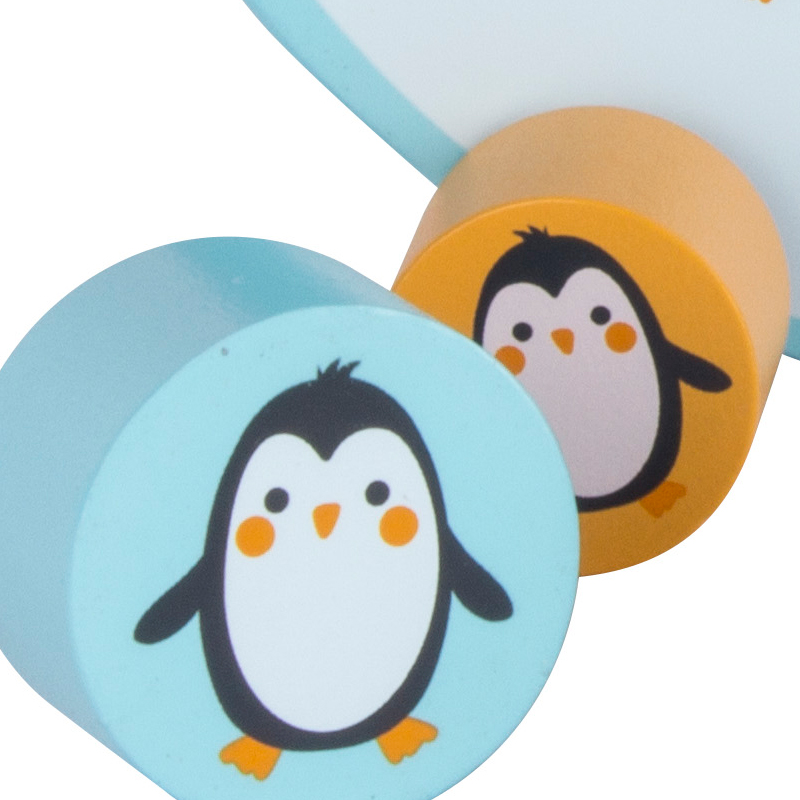 Ξύλινο παιχνίδι εξισορρόπησης. Σκοπός του παιχνιδιού να ισορροπήσουνε τους πινγκουίνους χωρίς να πέσουν, κολλώντας τα κομμάτια στο κατάλληλο χρώμα.Σχεδιασμένα από ειδικό υλικό που αποτρέπει χτυπήματα ή πεσίματα. Τονώνει τις αισθήσεις και τη σημασία της υφής. Βελτιώνει το χειρισμό και ενθαρρύνει τα παιδιά να παίξουν δημιουργικά.