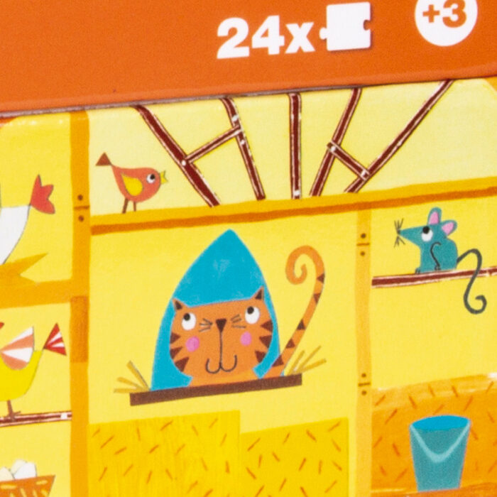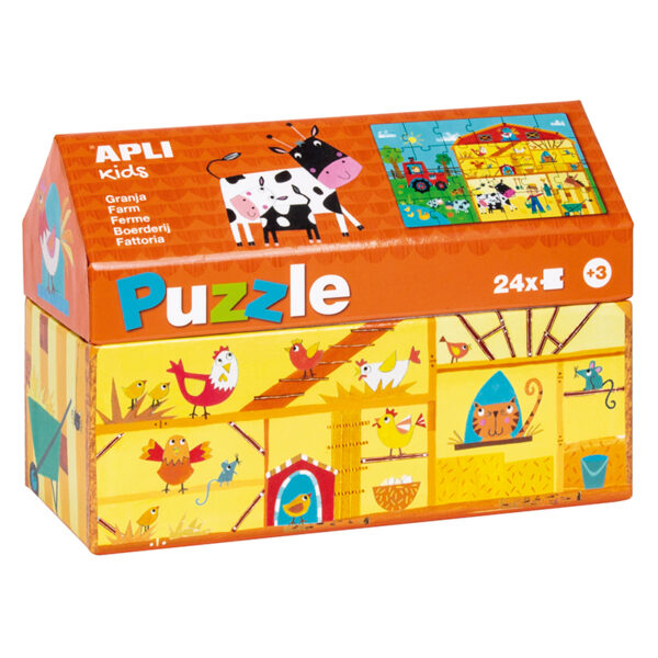 Εκπαιδευτικό παζλ για το εσωτερικό του κάθε κτηρίου σε πολύχρωμο κουτί σε σχήμα σπιτιού και γυαλιστερό τελείωμα. Βοηθά το παιδί να ανακαλύψει το εσωτερικό μιας Φάρμας. Ιδανικό για μικρά παιδιά.