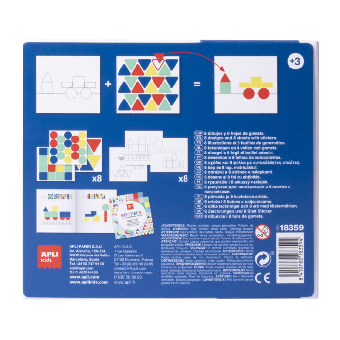 Ψυχαγωγικό και εκπαιδευτικό παιχνίδι με αυτοκόλλητα οχήματα, σε μοναδικά και αποκλειστικά σχέδια, σε κουτί απο χαρτόνι ιδανικό ν αποθηκεύσει τα παιδικά, αθώα, δημιουργικά μυστικά. Συμπληρώνει τα σχέδια στις κάρτες με τα ξεχωριστά γεωμετρικά αυτοκόλλητα και μπορεί να τα διορθώσει σε περίπτωση λάθους. Ενθαρρύνει την ικανότητα μηχανικού χειρισμού, συντονισμού χεριού-ματιού και τη χωρική όραση.